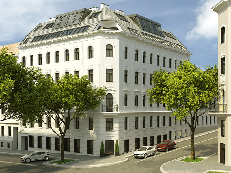 Im urbanen Herzen des 15. Bezirks befindet sich, nur wenige Schritte von der nächsten U-Bahn-Station entfernt, ein wunderschönes Eckhaus aus der Gründerzeit. Hier wurde Martin Haas beauftragt das Gebäude mit seiner klassischen Fassade zu sanieren und das Dachgeschoss mit zusätzlichem Wohnraum auszustatten.